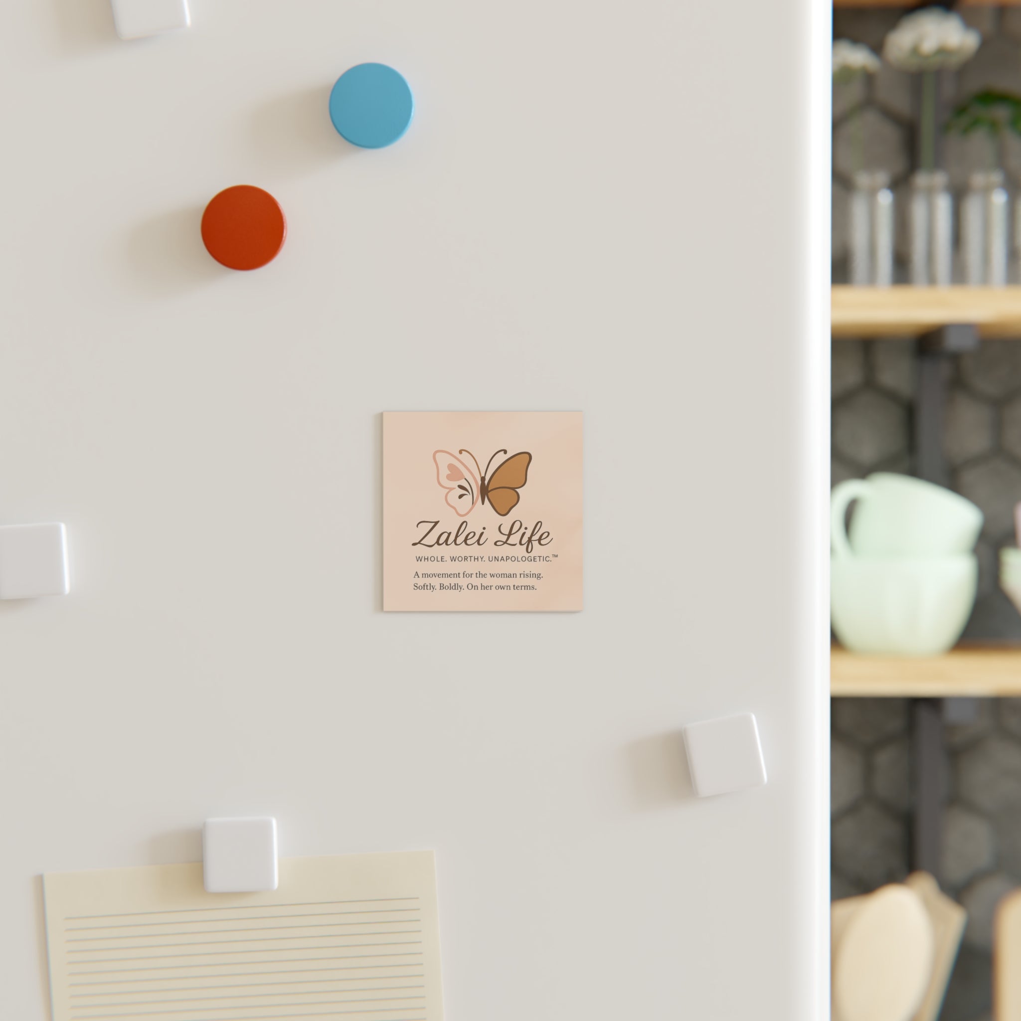 This square Zalei Life magnet is more than decoration — it’s a daily reminder of peace, truth, and the power of becoming. Available in two sizes (3" x 3" and 5" x 5"), each magnet is printed with UV-resistant inks and finished in a soft matte that keeps your message vibrant and timeless. Whether you place it on your fridge, car, or workspace, let it ground you in who you are and how far you’ve come.
