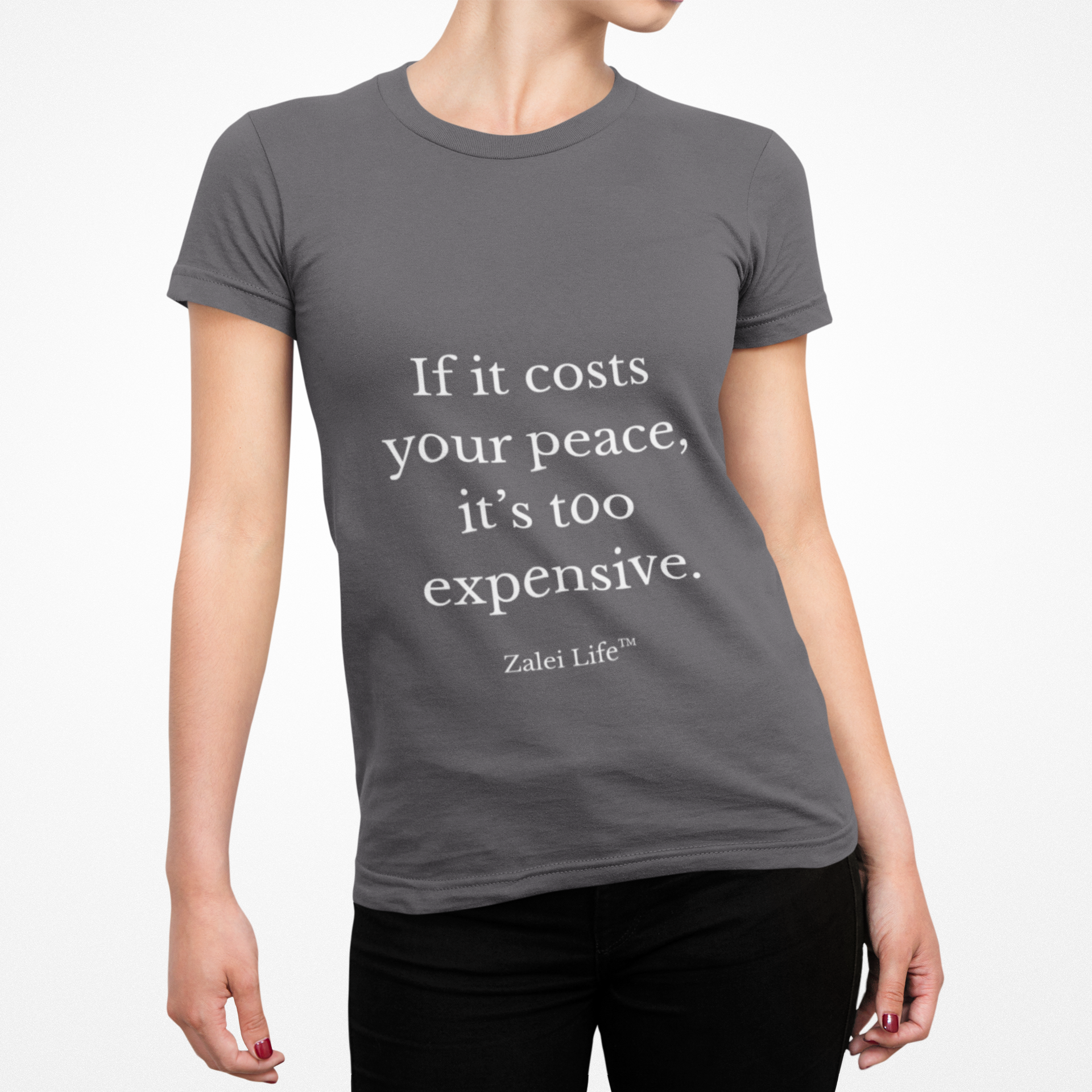 Zalei Life Ladies' V-Neck T-Shirt - If it Costs Your Peace - White Lettering
